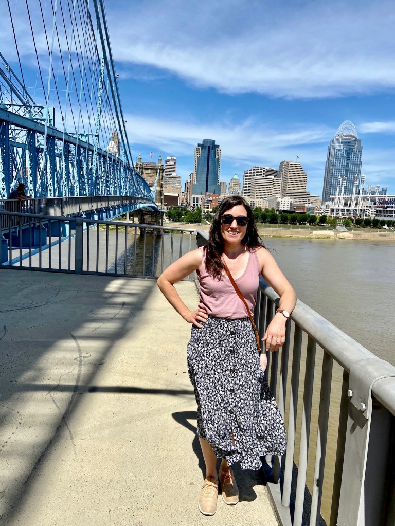 After getting settled into our hotel in Covington, Kentucky and finding we weren’t the only guests around this time, we met our friends for an outdoor patio dinner at Ripple Wine Bar. We were thrilled to be welcomed to town by Rob and Natalie who we hadn’t seen in almost a year after they had moved back to the US and sadly no longer lived a few blocks away from us in Brussels. We caught up on life post-Belgium and laid out the plans for a full day of touring kicking off the following morning. Rob even offered to lace up his tour guide shoes early and escort us on a morning run through Devou Park. We didn’t regret taking him up on the offer as it resulted in us taking in Cincinnati’s seven hills and eight bridges from an expansive overlook that we otherwise would not have known about.