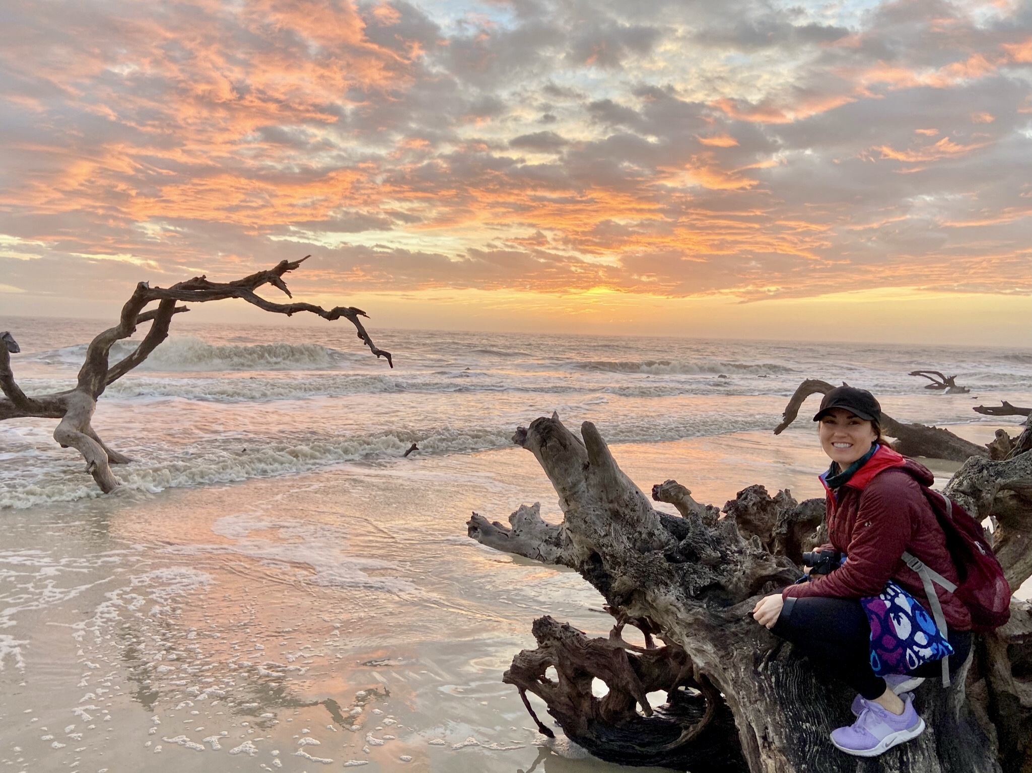 For the final sunrise of 2020 we headed back to Driftwood Beach which had significantly decreased in size on account of the high tide. We staked out a log on which to enjoy the spectacular sunrise and when the sun was above the horizon and our stomachs were growling, we headed back for breakfast.