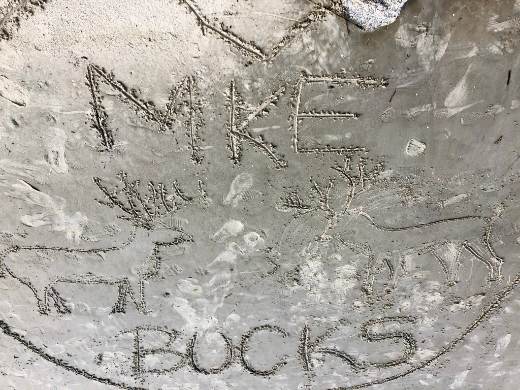 Never ones to turn down an opportunity for friendly competition and bragging rights, we packed tennis and pickleball rackets in anticipation of using the courts on the island. Upon arrival at the clubhouse, we were told they didn’t offer pickleball but we could make a reservation for an hour on the fancy clay courts. While we awaited our tennis reservation, we started the competition early with some art on the beach.